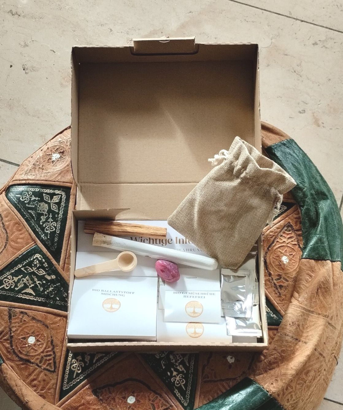 - eine Spezielle Mischung aus indischen Zutaten wie beispielsweise Okra, Aktivkohle und Weihrauch. Diese haben wir von Hand in die mitgelieferten Kapseln gefüllt.